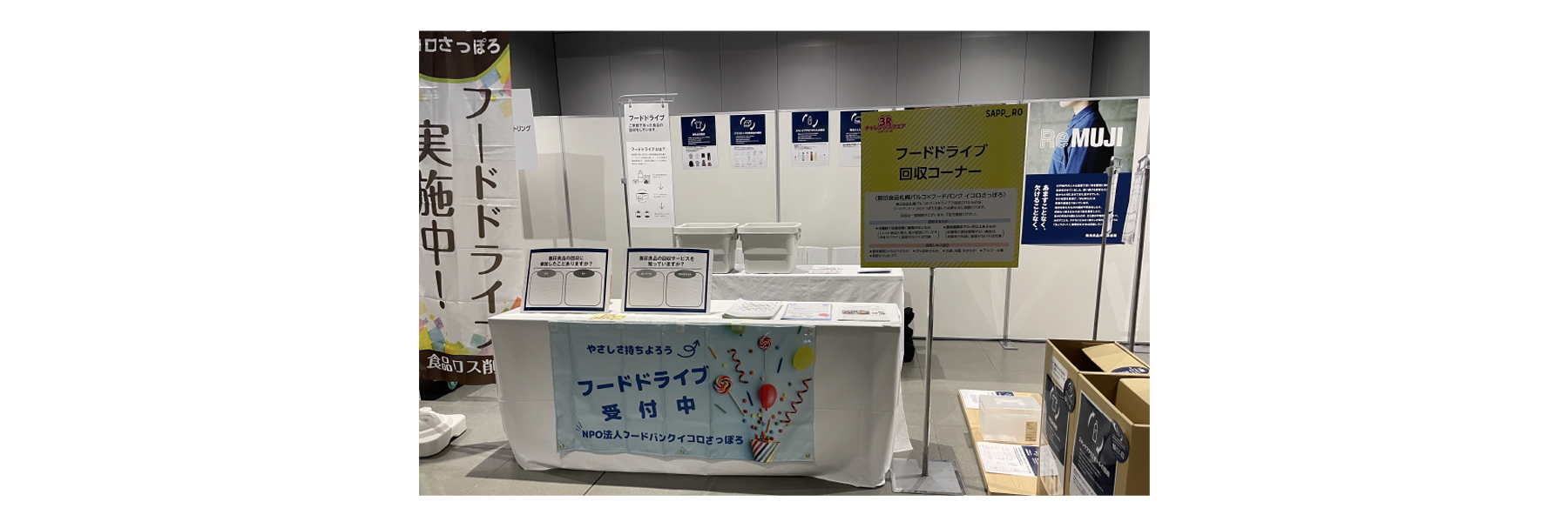 「無印良品札幌パルコとフードバンクイコロさっぽろ」のご協力によるフードドライブコーナー、
